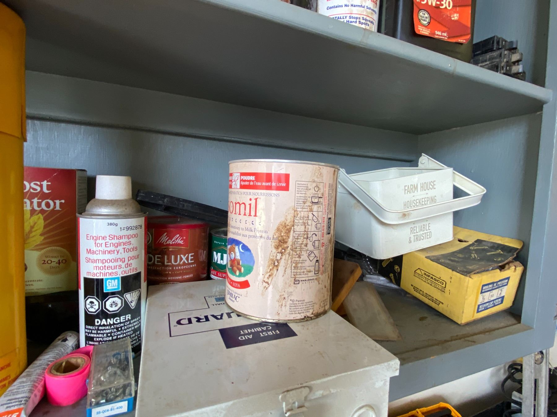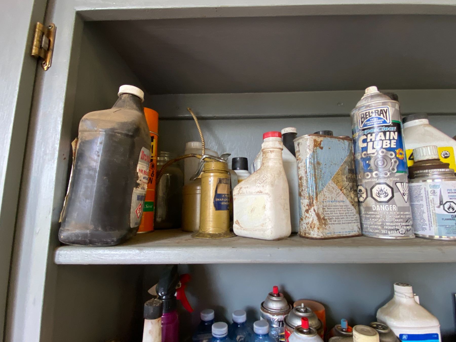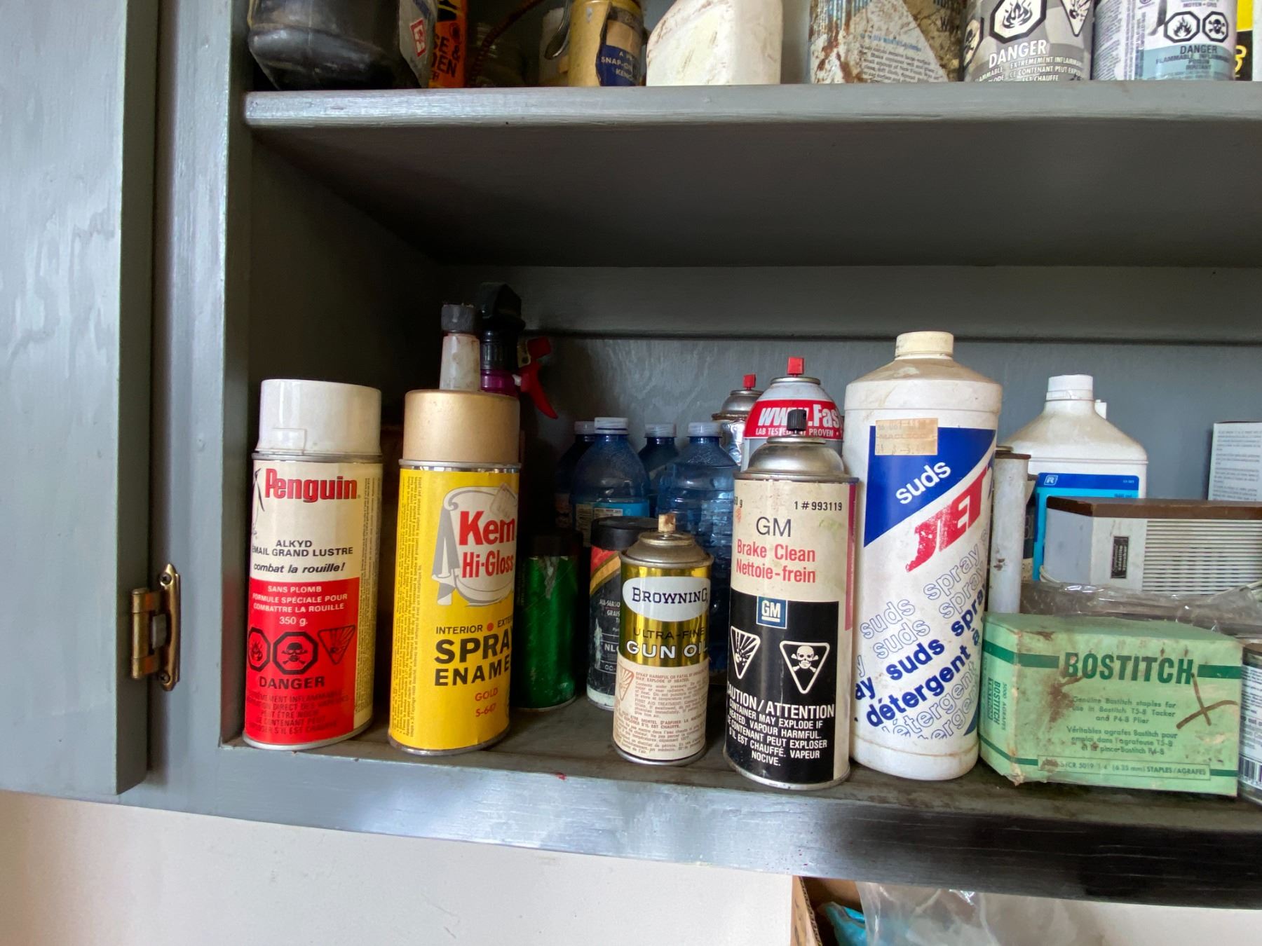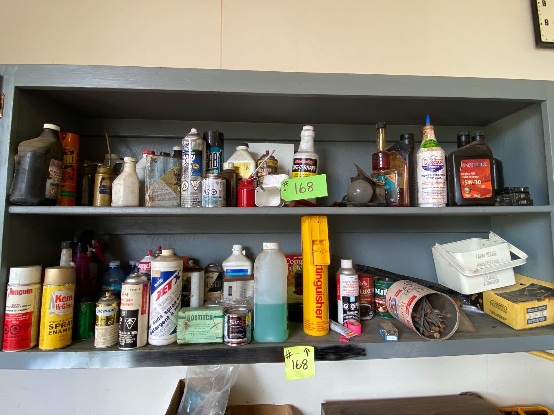 Oils, Paint, Cleaners, Nails & contents in cupboard