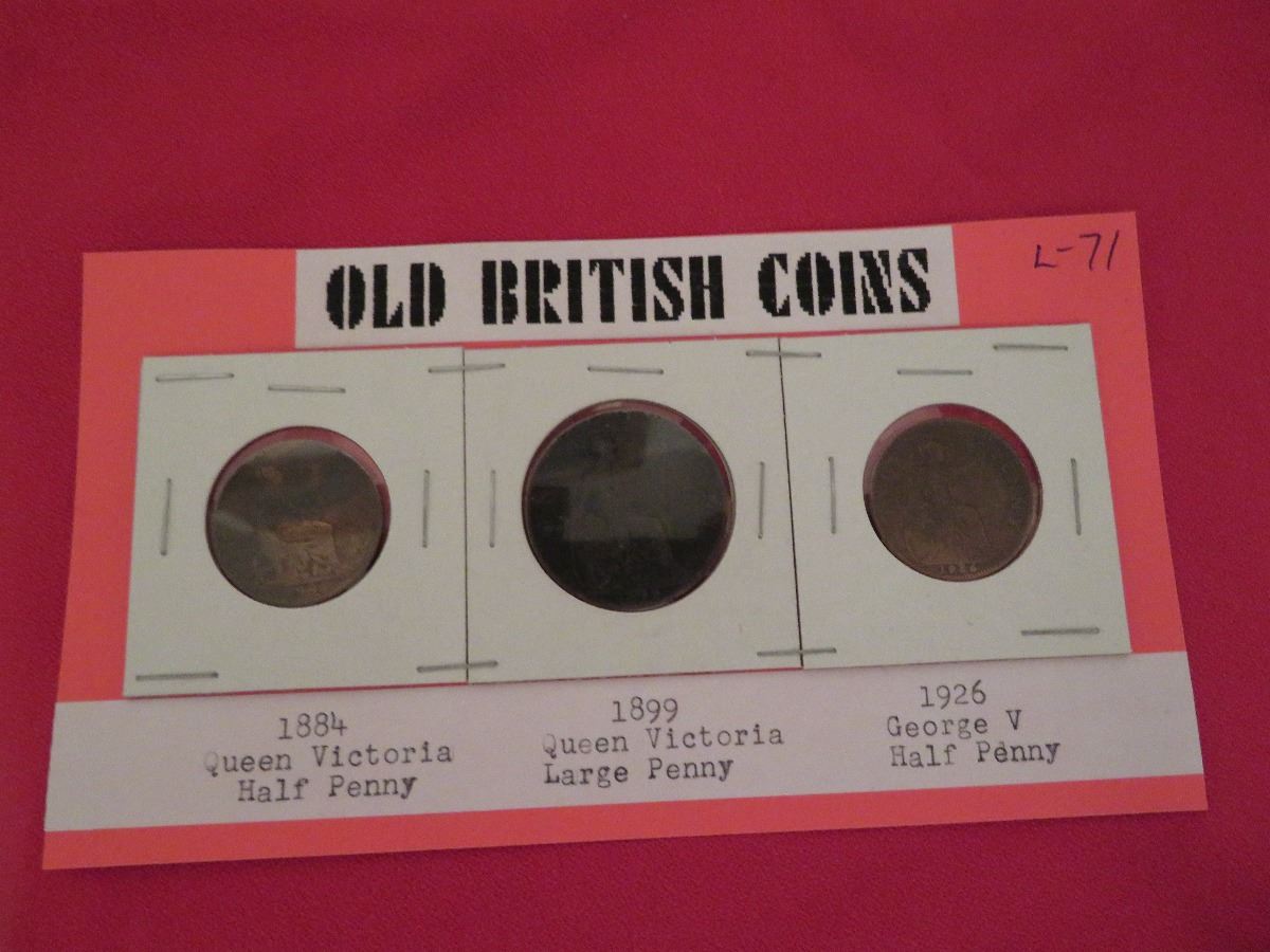 Old Britian coins 1884 and 1925 half penny and 1899 penny