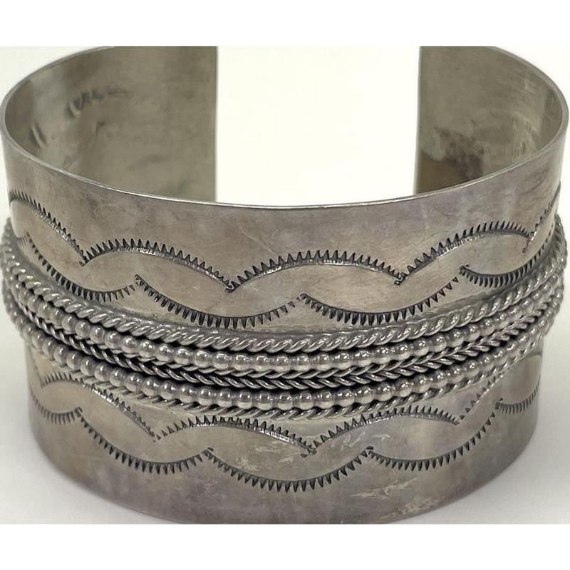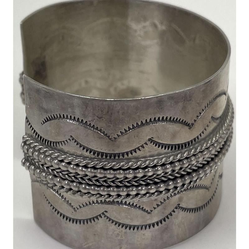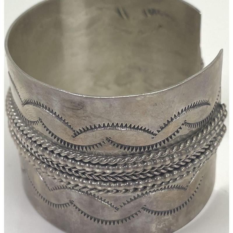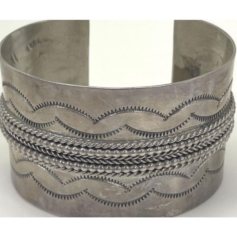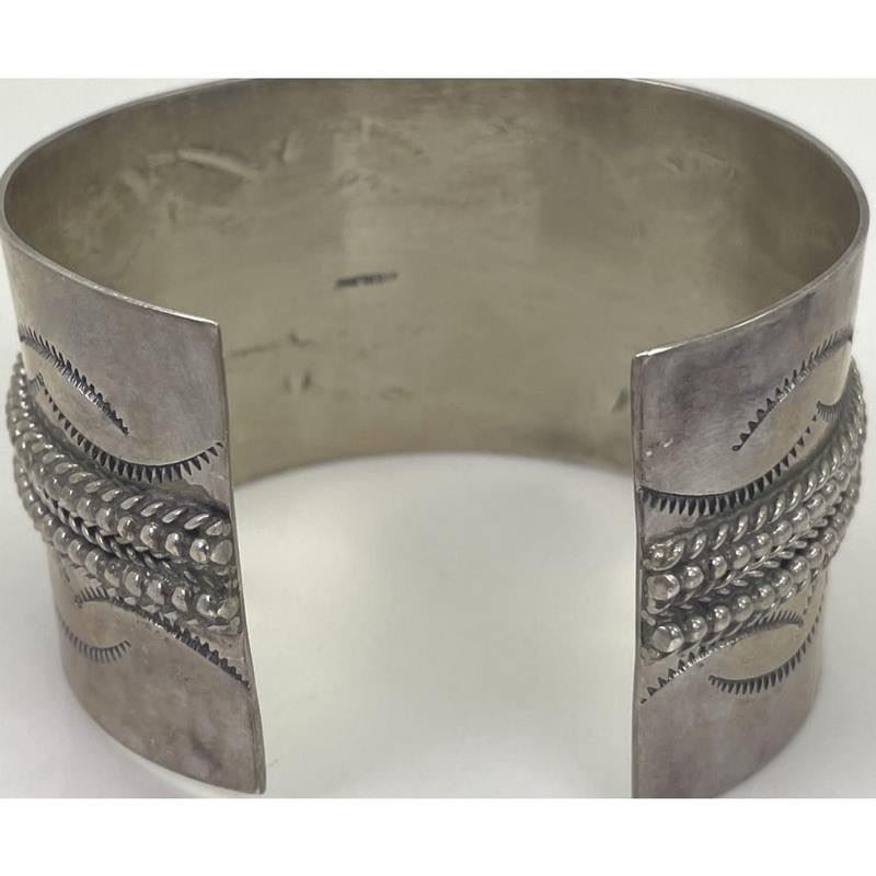 Old Pawn Navajo Ingot Cuff Bracelet Hand Stamped Sterling Silver 65g