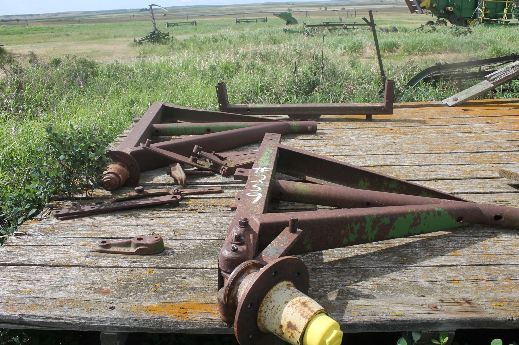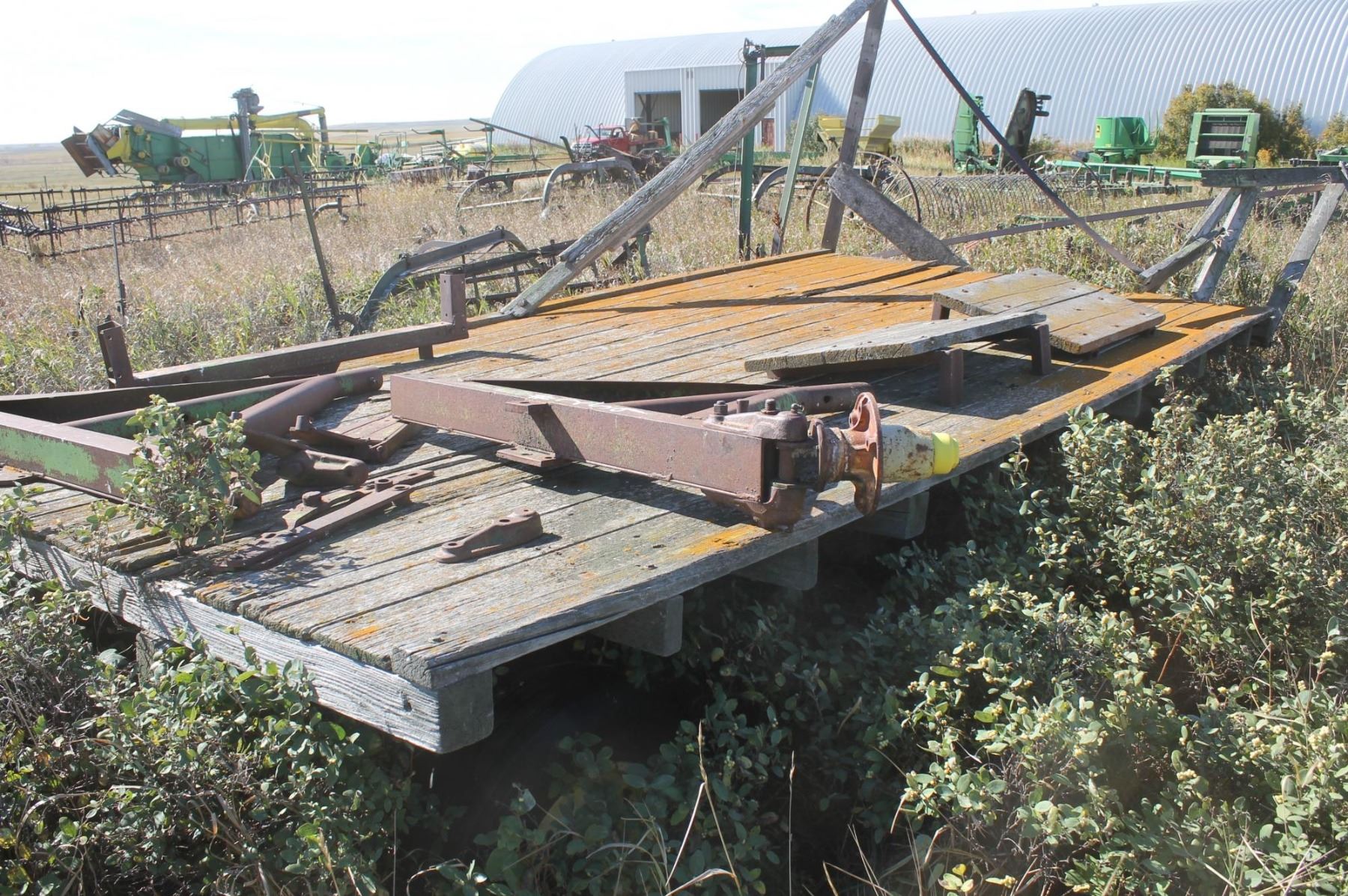 Old hay rack c/w steel framed wagon