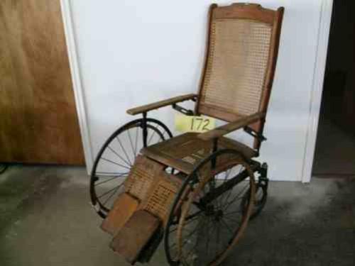 caned seat & back, adjustable leg supports, good tires, rear swiveling wheels