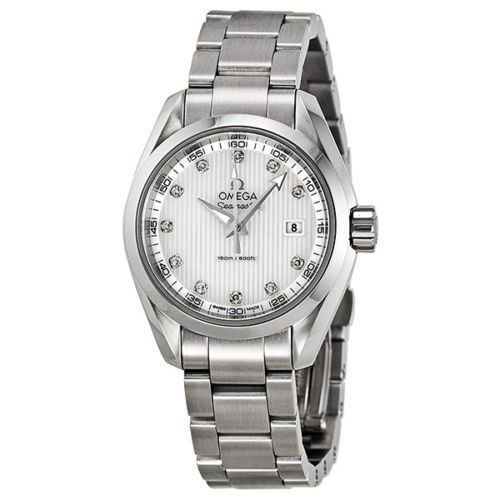 Omega Seamaster Aqua Terra Diamond Silver Dial Stainless Steel Ladies WatchWATCHBrand:OmegaSeries:SeamasterModel No:231.10.30.60.55.001Gender:Ladies Movement:Quartz CASEMaterial:Stainless Steel Diameter: 30 mmThickness:10.8 mm Bezel:Fixed Stainless SteelDIALColor:Teak white mother of pearl with diamonds BRACELETBand Material:Stainless Steel Clasp:Deployment with Push ButtonFEATURESWater Resistance:150 meters / 500 feet ADDITIONAL INFO functions: Date, Hour, Minute, Second