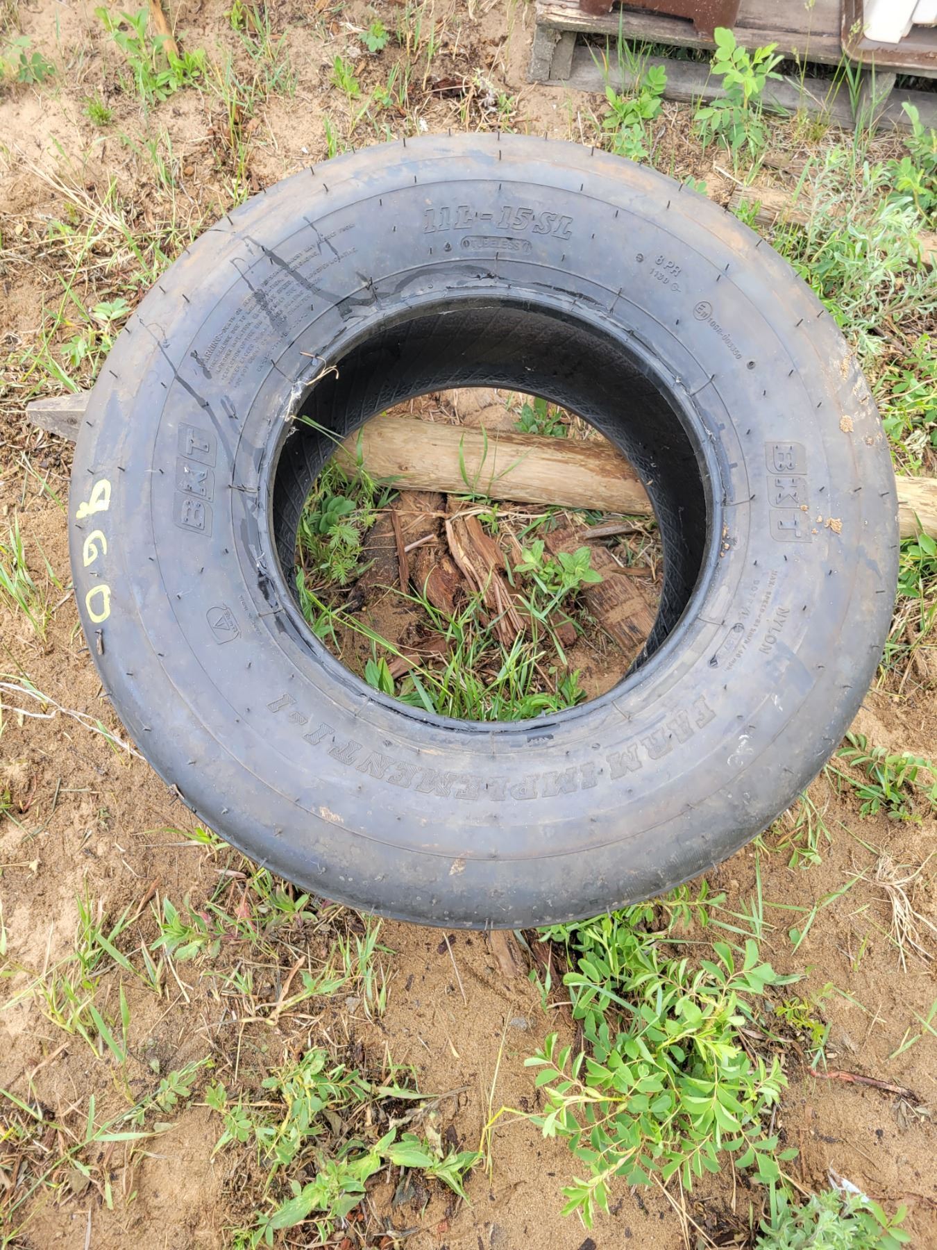 One 11L-15SL farm tire. As new.