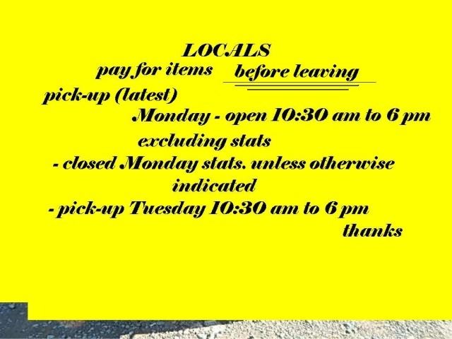 ALL ITEMS MUST BE PICKED UP BY THE END OF THE NEXT DAY OF THE SALE