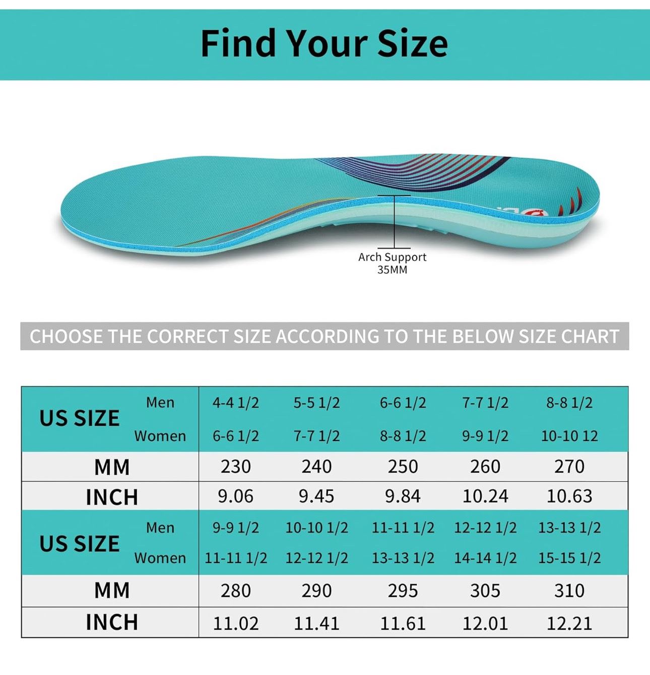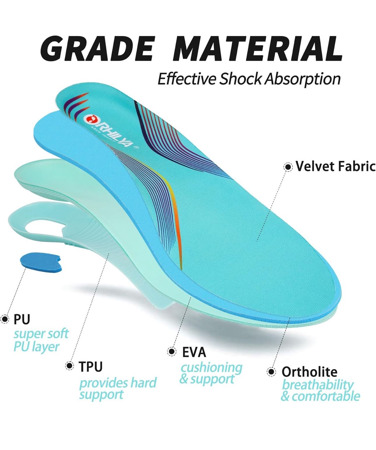 Orhilya Pain Relief Orthotic Arch Support Insoles M11-11 1/2 and W13-13 1/2 - New