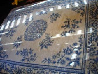 Oriental Blue & White Rug, 98" wide; 127" long; worn