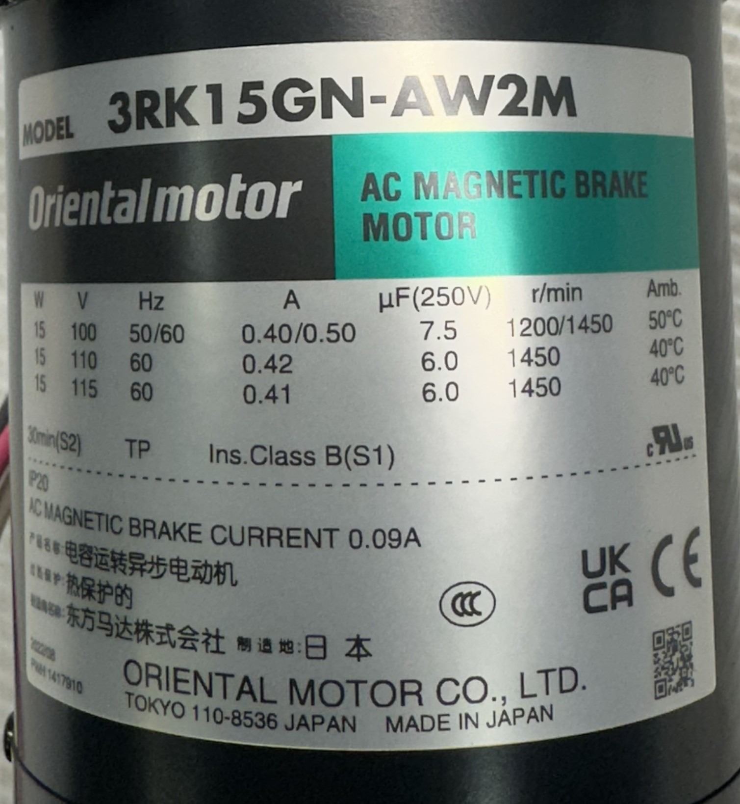 Oriental Motor #3RK15GN-AW2M AC Magnetic Brake Motor