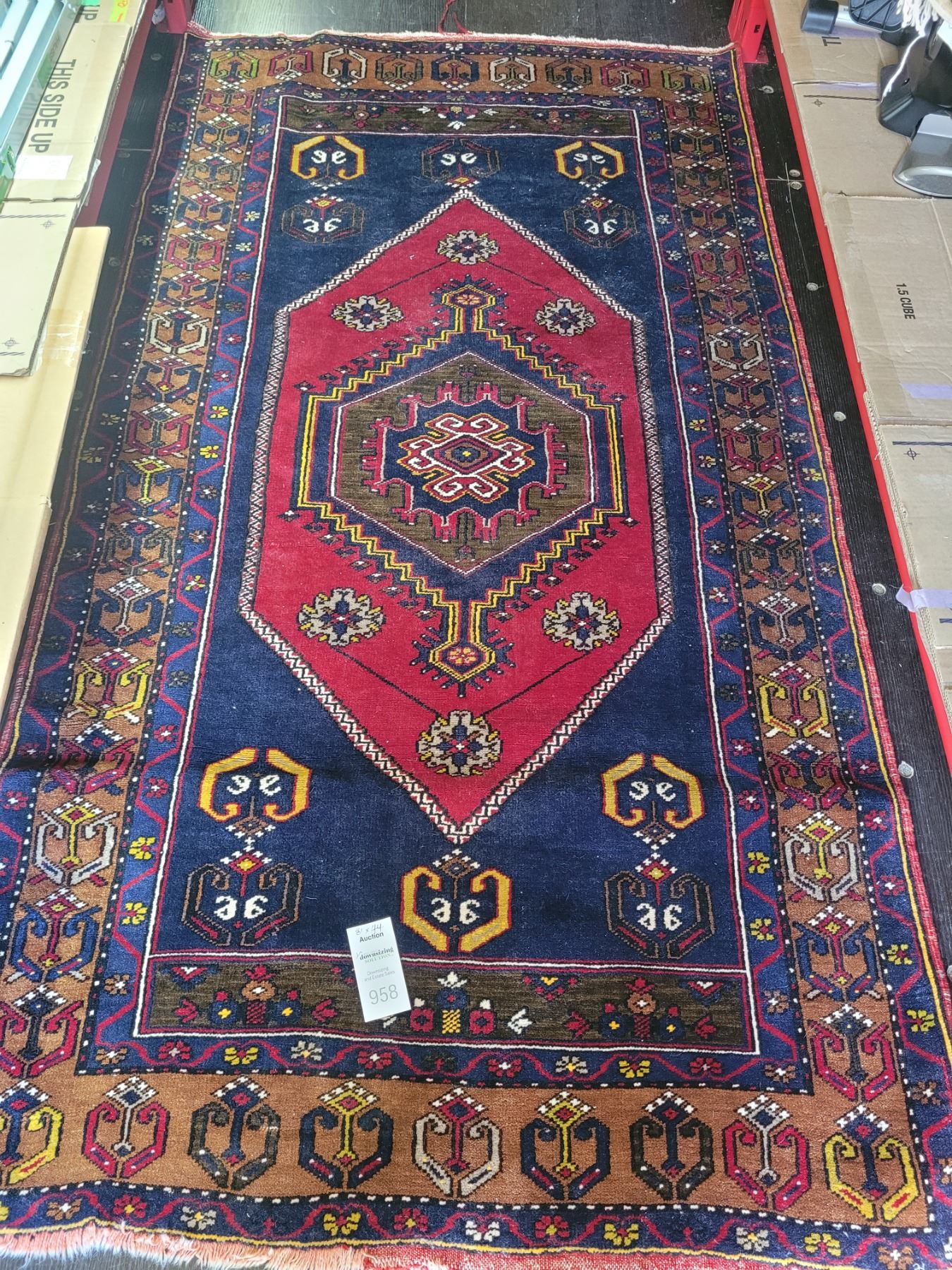 Hand knotted wool rug 81x44 Pickup at 10 am