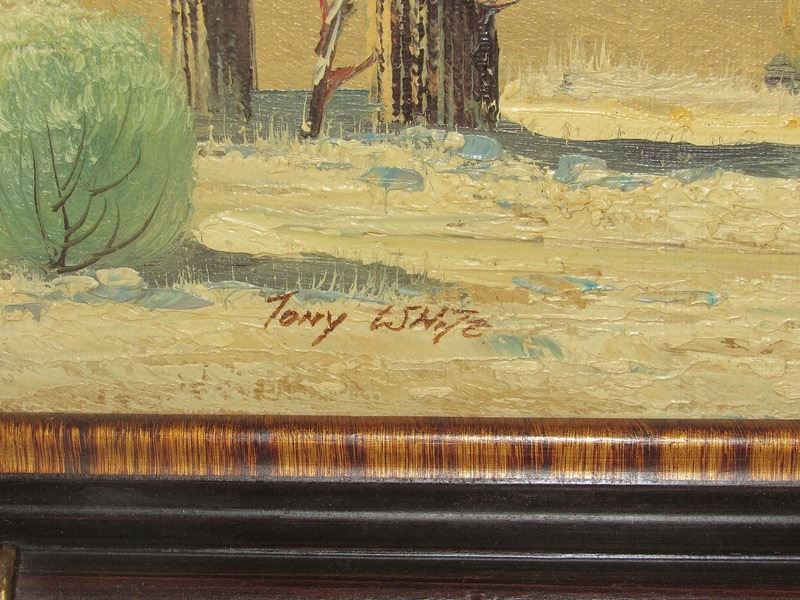 Original Vintage Painting, Southwest Desert, Tony White, Framed. Canvas, Wooden Frame Condition Good Buyer's Premium 20%. SHIPPING FEE APPLIES. WE SHIP ALL ITEMS IN-HOUSE!