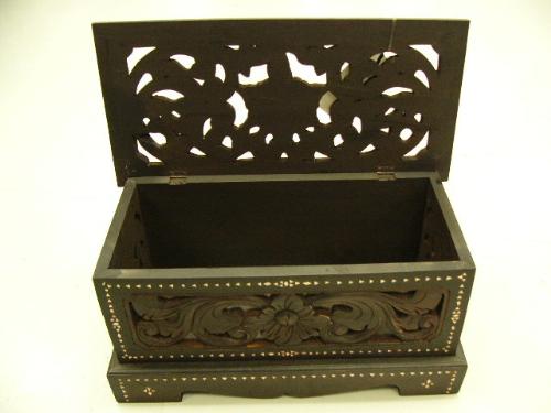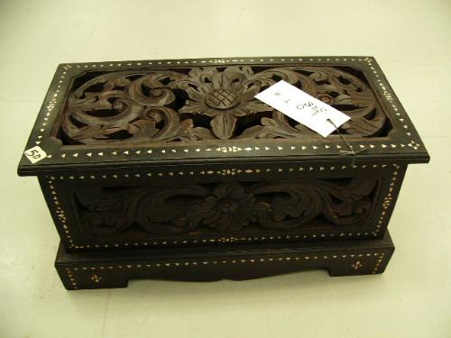 Ornate abalone in-laid box- 10" H, 9-3/4" D, 20" W (1)