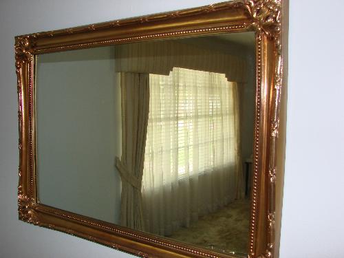Ornate gold frame mirror, apprx. 29" x 41"