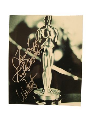 It's amazing how many people don't realize that legendary super-stars and multi-Oscar winners Shirley MacLaine and Warren Beatty are real life brother and sister! They keep this relationship very private and are almost never seen together. That is why this photo of the Oscar Statue, signed by both MacLaine and Beatty is extremely rare indeed! (8x10).