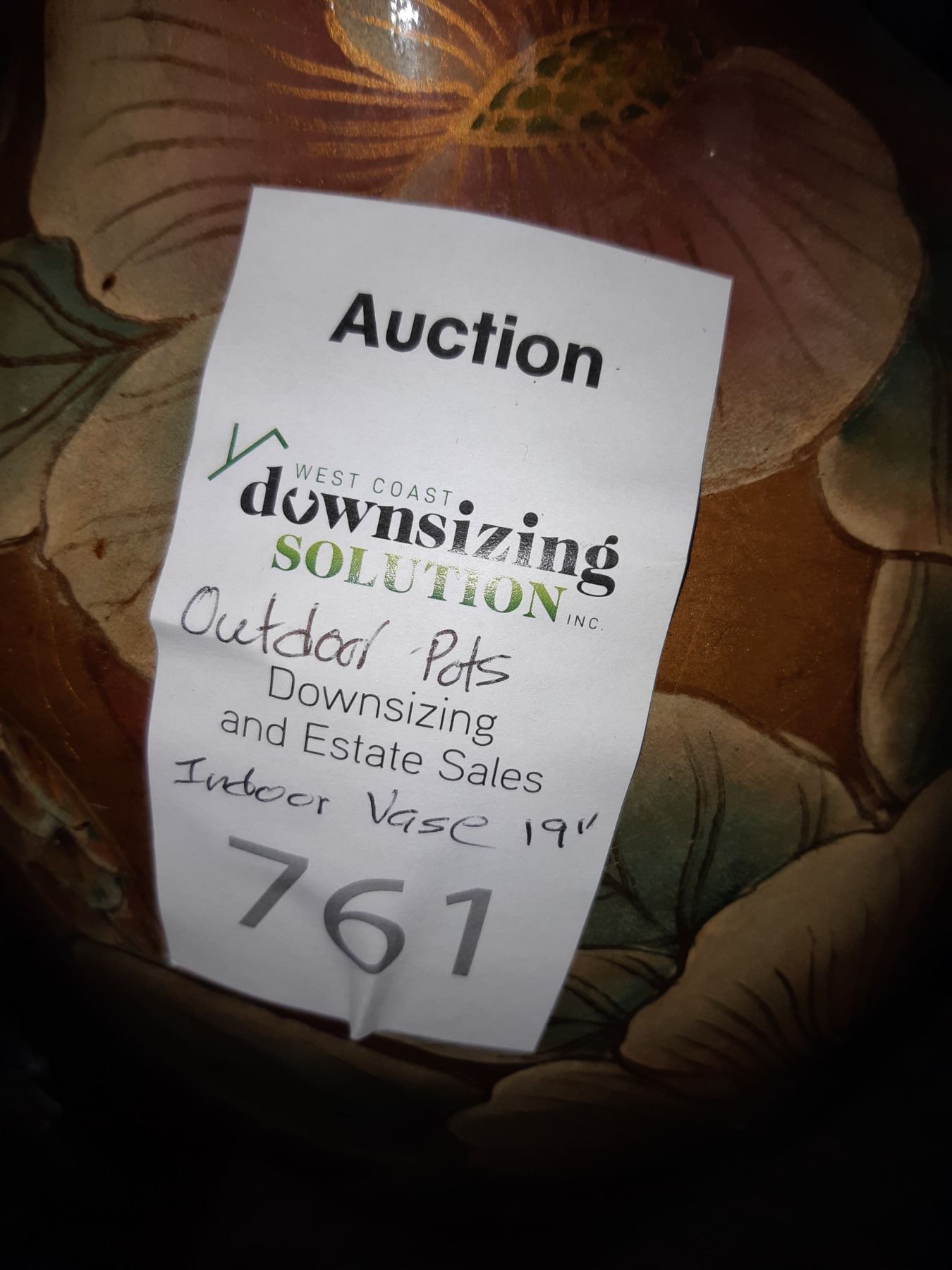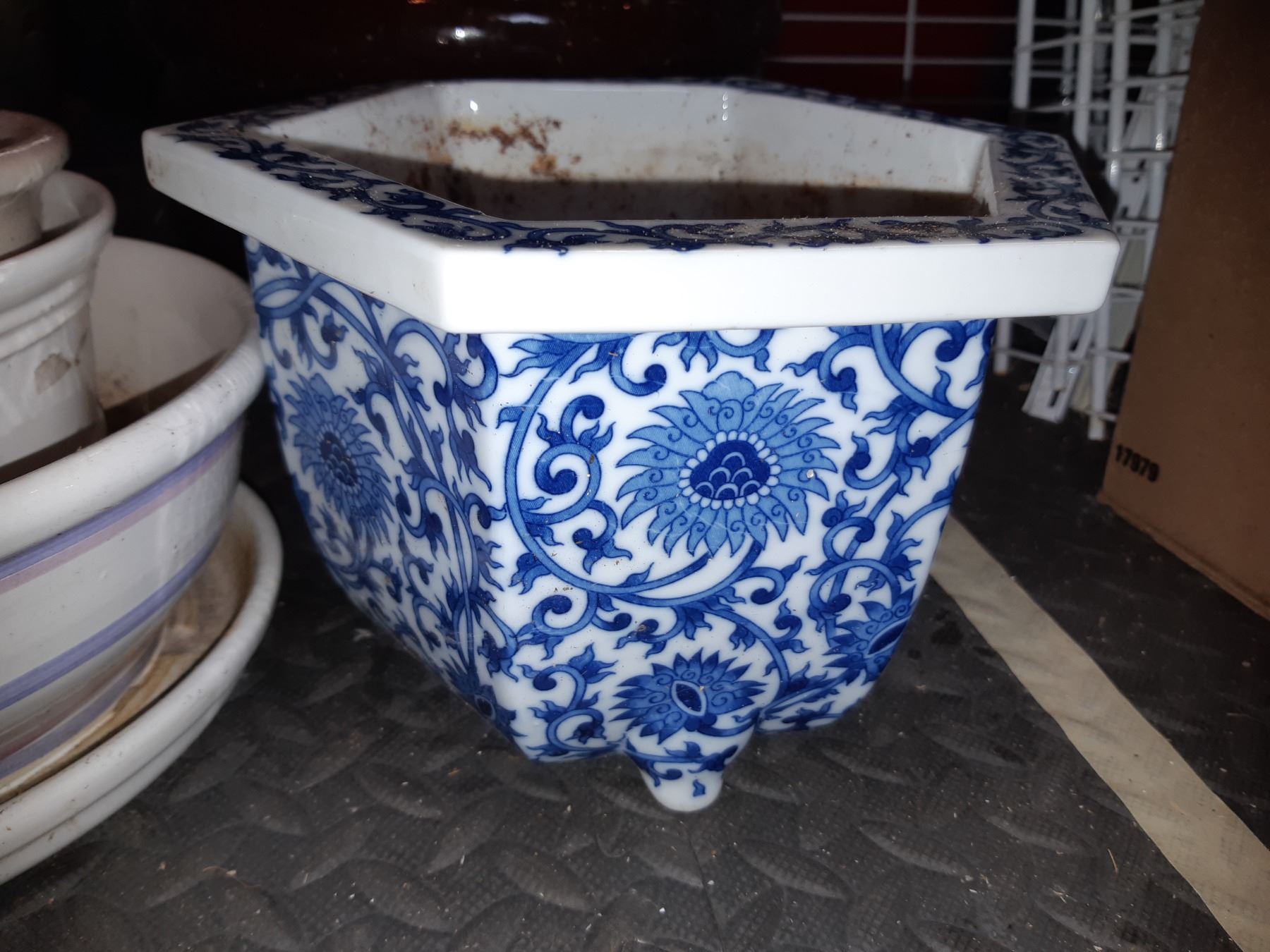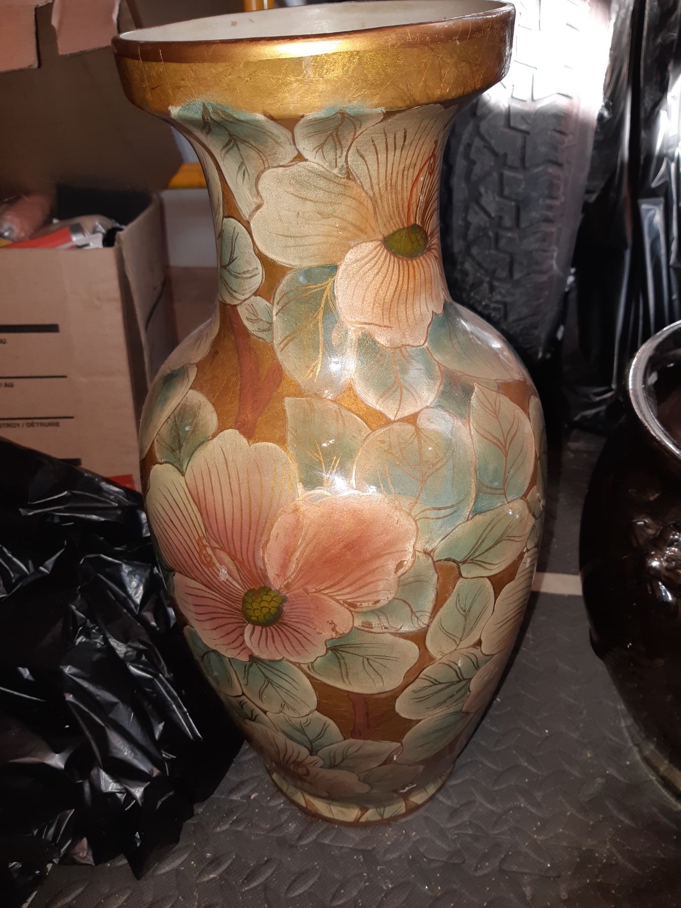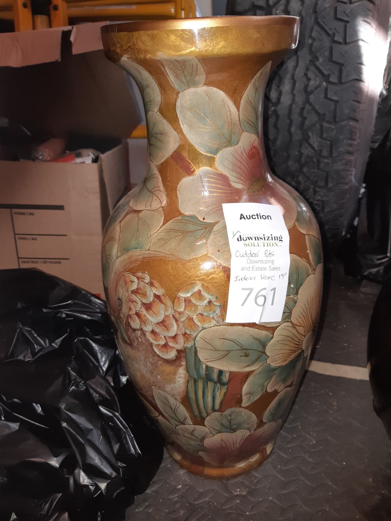 Assortment of outdoor pots and one 19" Vase. Bring packing materials and pickup at 9 am