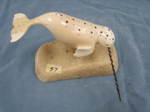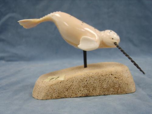 Outstanding 5 inch Narwhale white ivory baleen tusk, spots on back are inset with baleen, Stock # 811F By. Charles Edwards (2)