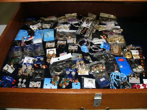Over 100 pairs of earrings, costume jewelry and hair accessories - brand new (700)