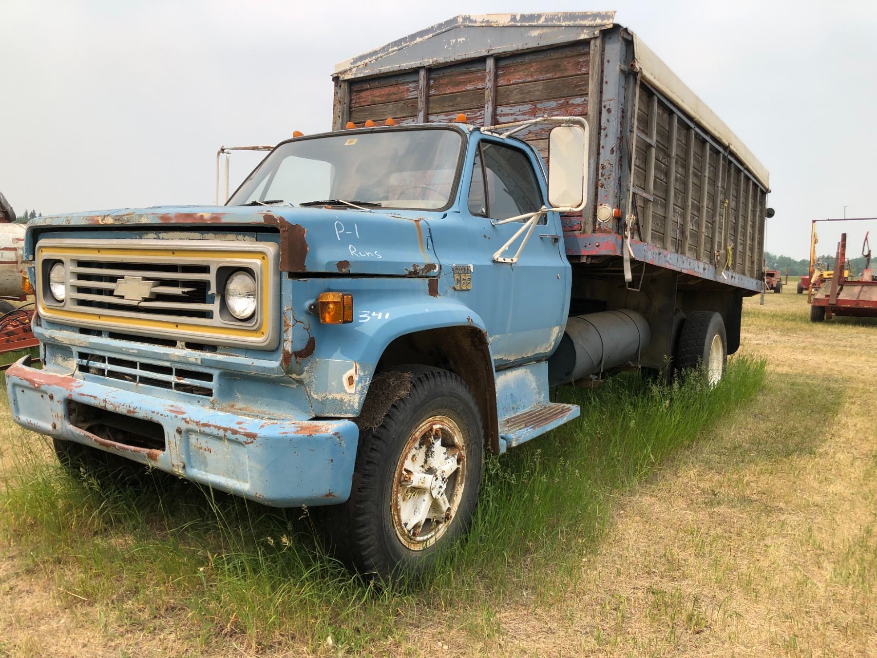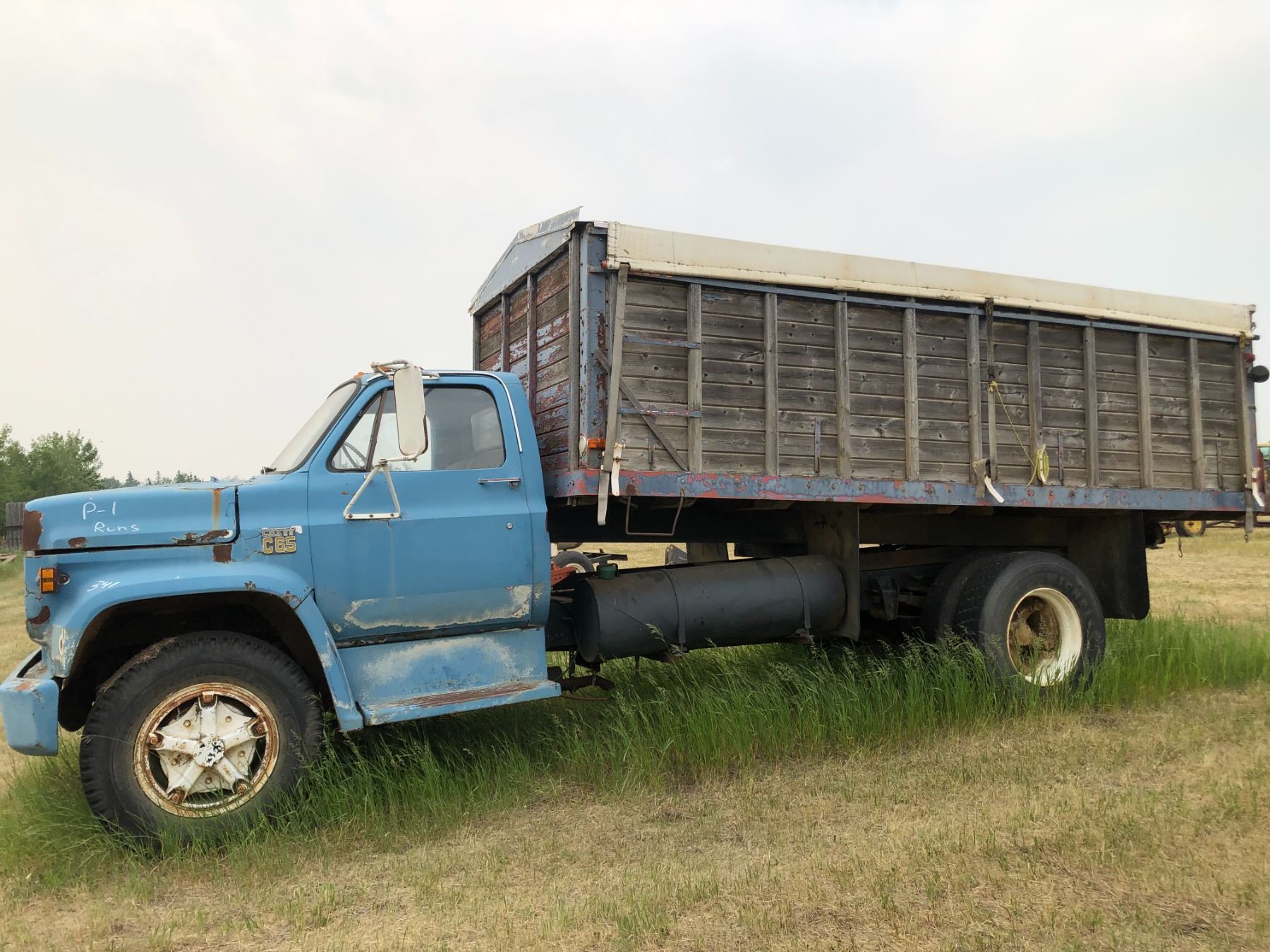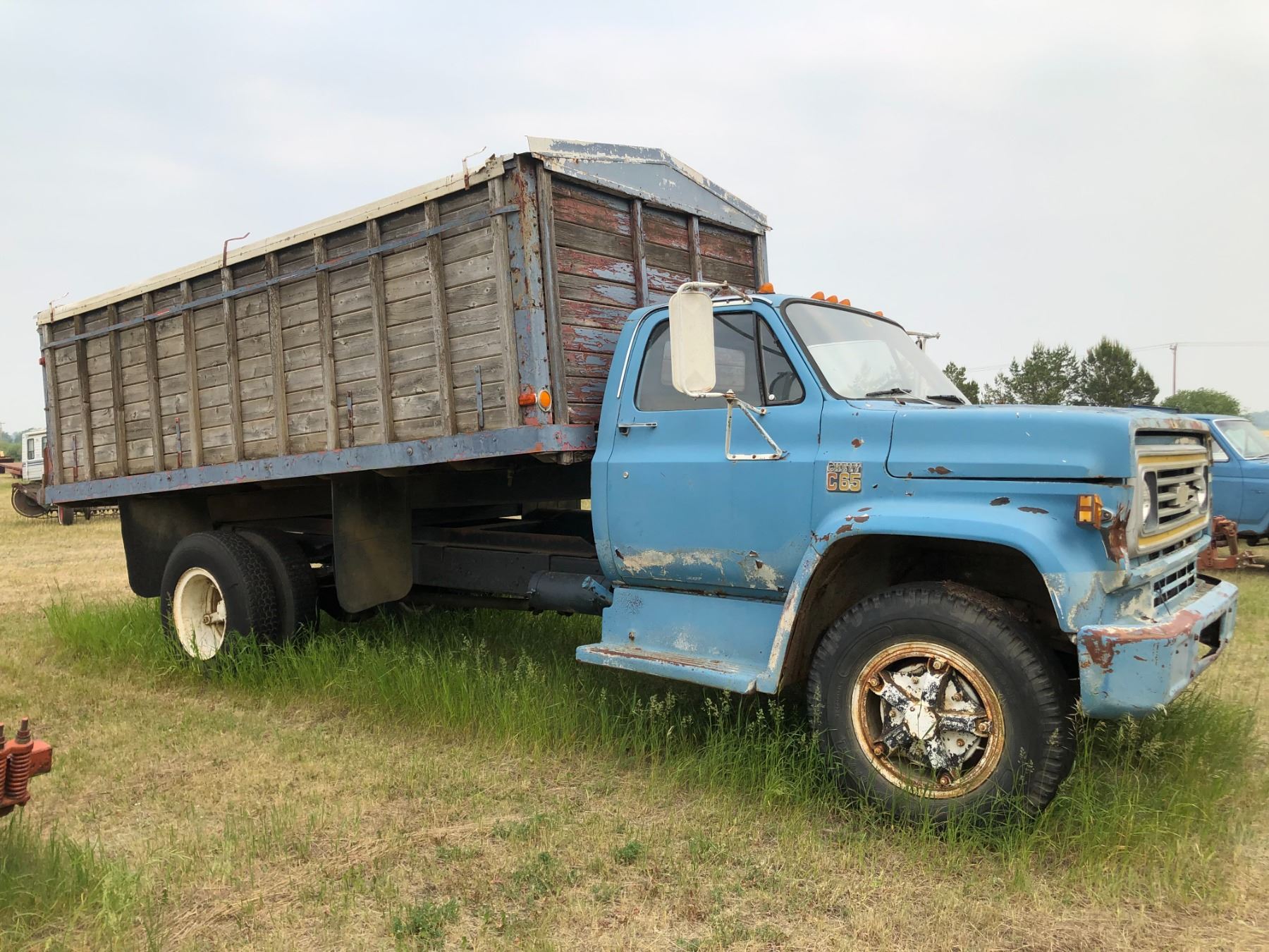 P1 1975 Chevy C65 Grain truck, SN. CCEE665V104197, was driven in last fall, can't start, 16 ft B&Hoist, big block 5 & 2 spd.