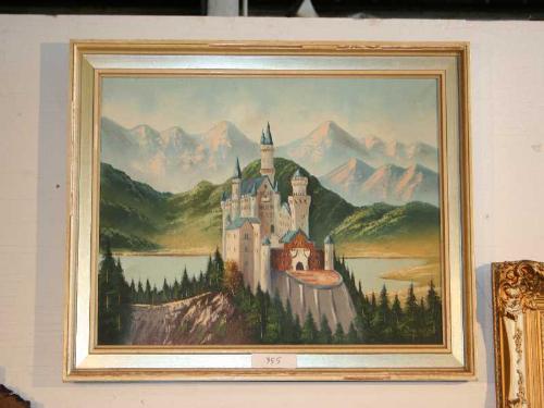 GOLD FRAMING WITH A PAINTING OF A CASTLE32" X 25"