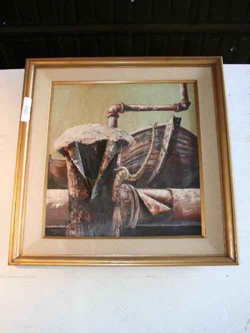 4" FRAME PAINTING OF A BOAT AND PIPES 32" X 28'