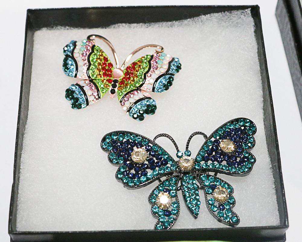 PAIR OF BUTTERFLY RHINESTONE BROOCHS