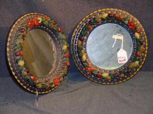 PAIR OF FRUIT MOTIF DECORATIVE 12" ROUND MIRRORS