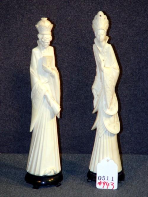 PAIR OF IVORINE ORIENTAL FIGURINES