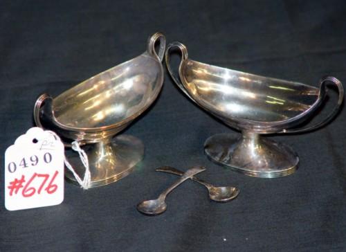 PAIR OF SILVER BOAT SHAPED MASTER SALTS WITH DIPS- 2 X THE MONEY