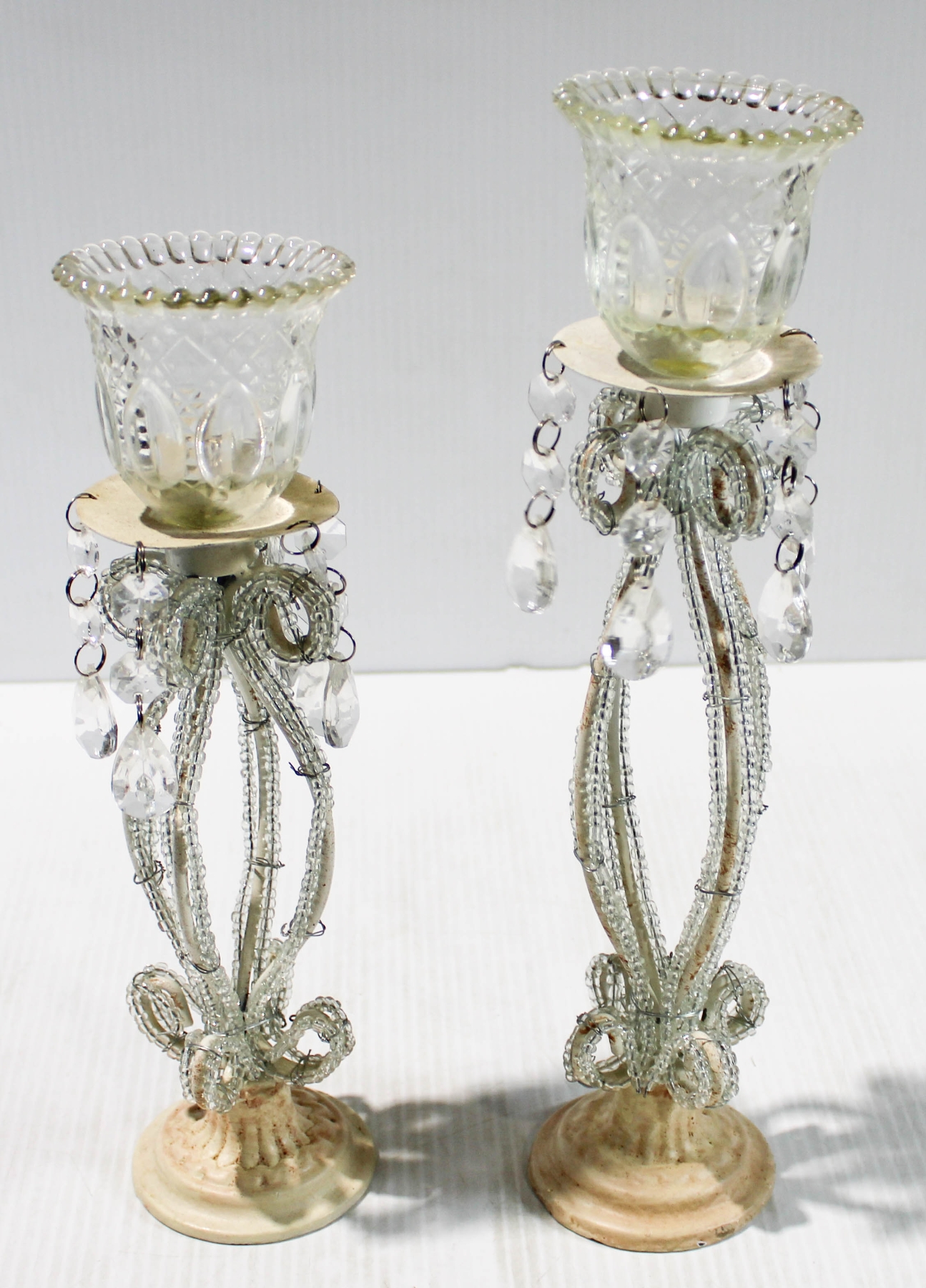 PAIR OF VINT. CRYSTAL CANDLE HOLDERS