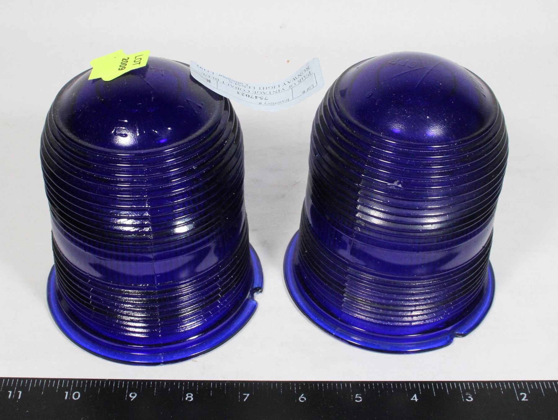 PAIR OF VINTAGE COBALT BLUE RUNWAY LIGHT LENSES