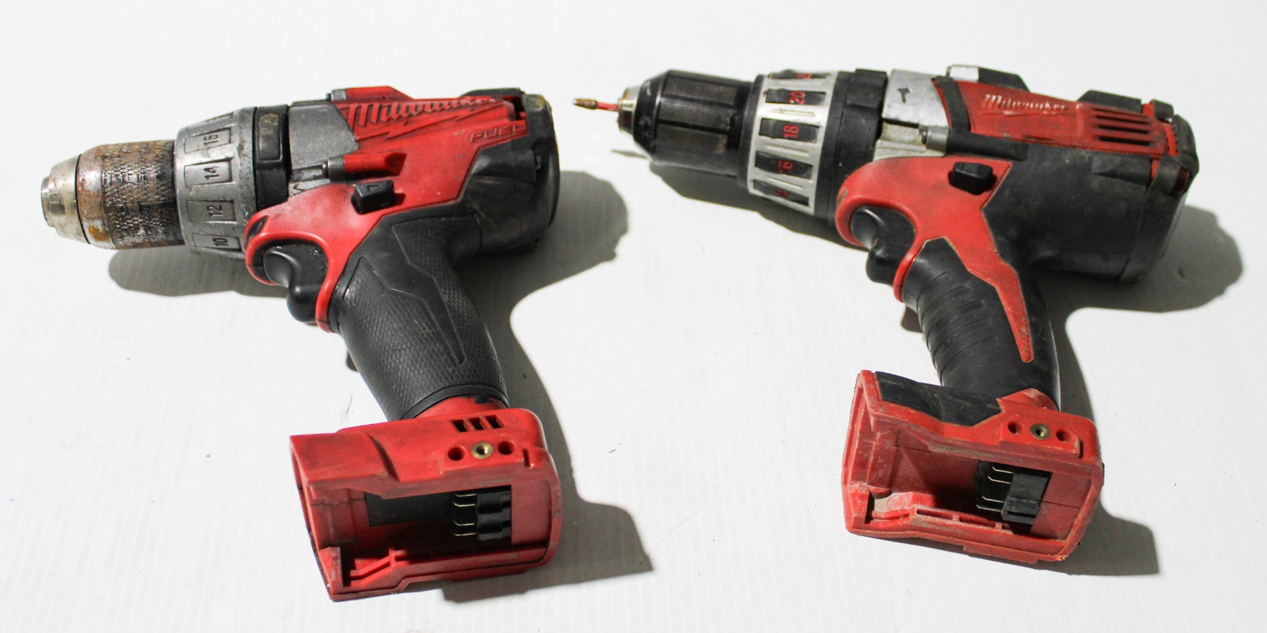 TESTED. INCLUDES 1/2" HAMMER DRILL AND 1/2" DRILL DRIVER, NO BATTERIES