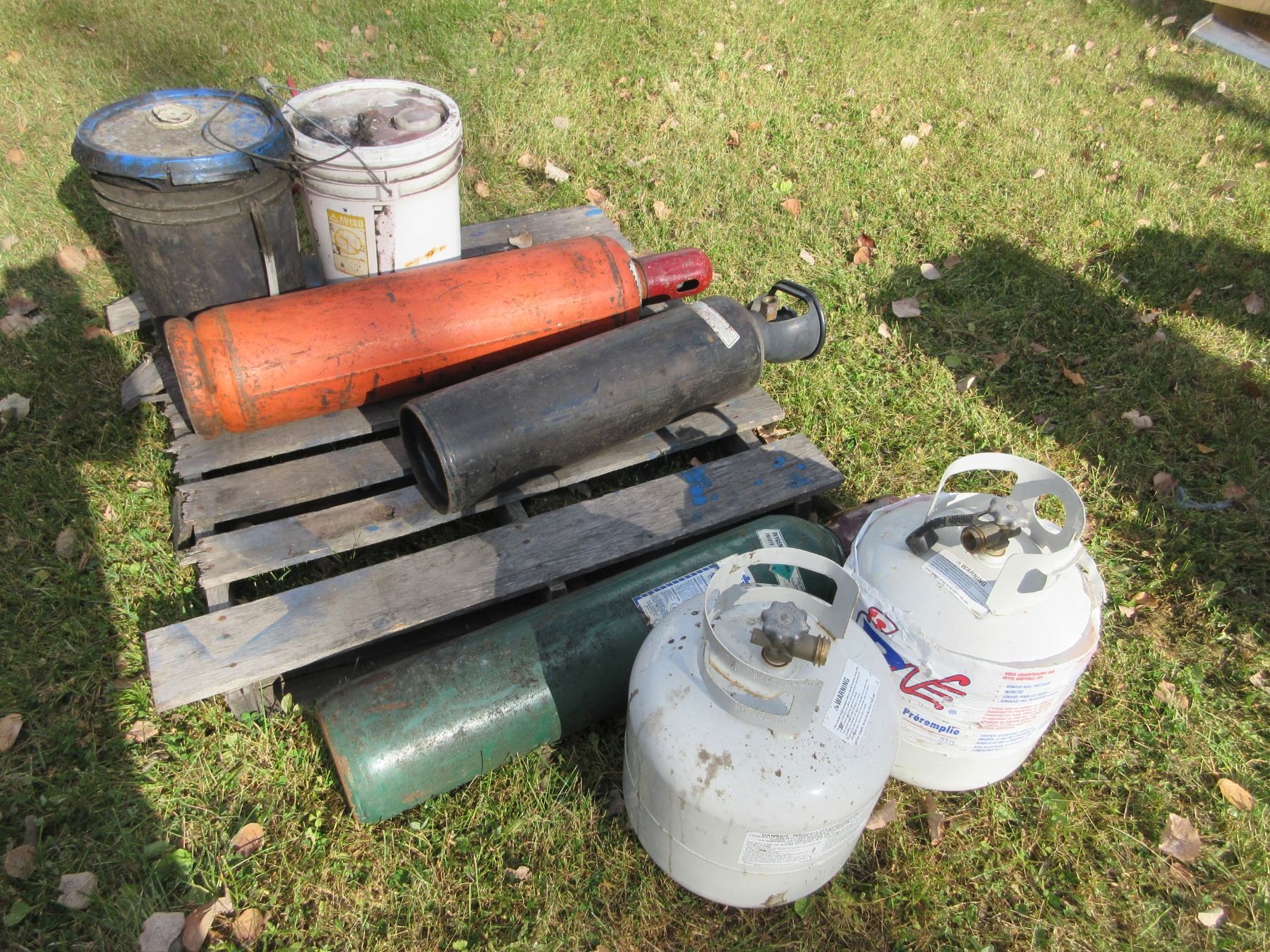 PALLET C/W 2 PROPANE TANKS & 3 PROPANE BOTTLES