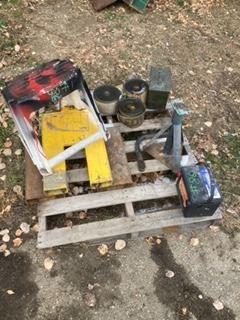 PALLET C/W BATTERY, TIE DOWN STRAPS, ETC