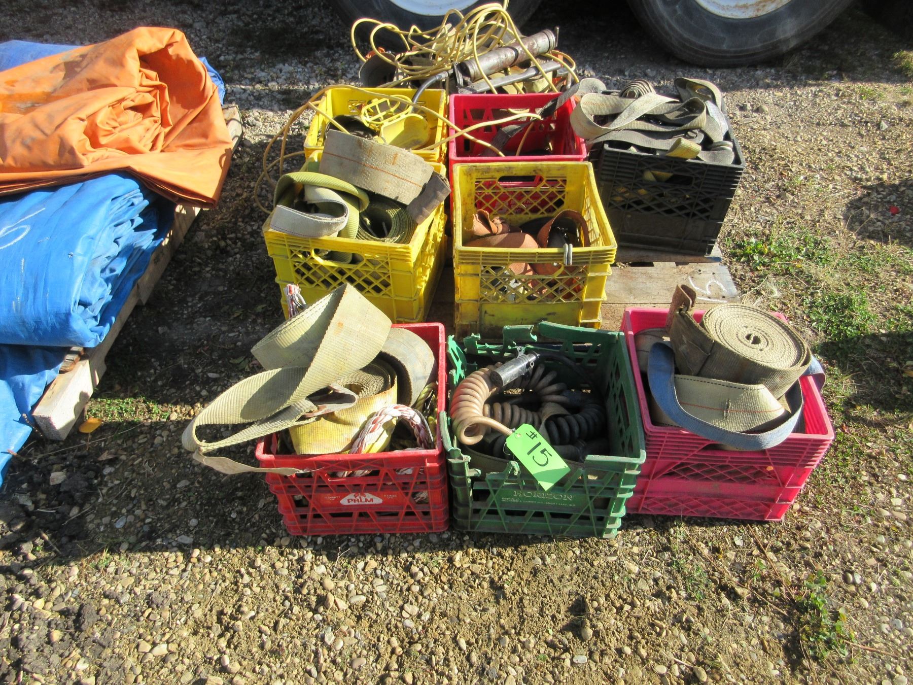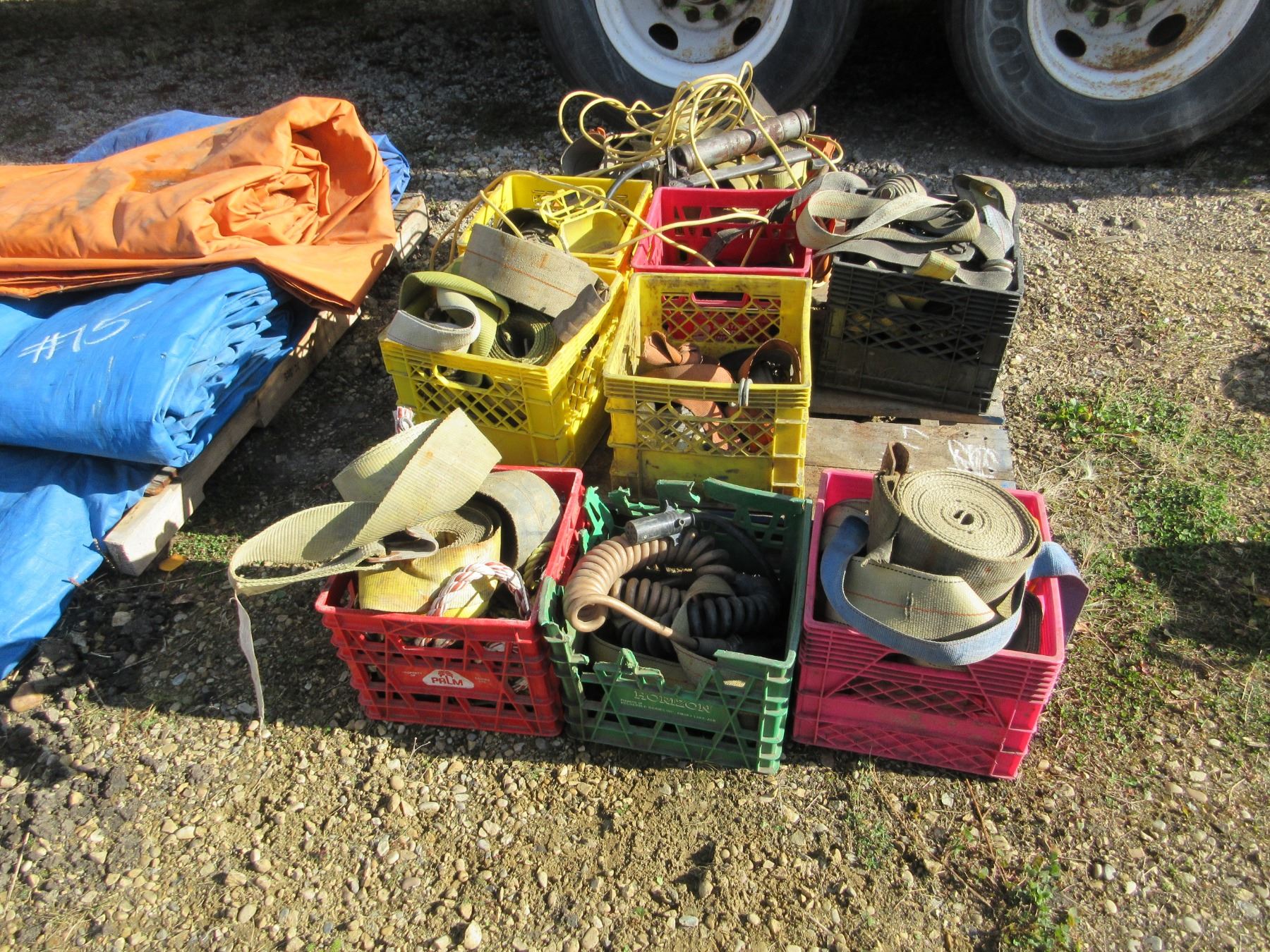 PALLET C/W CRATES OF STRAPS, GREASE GUNS, TRAILER CORDS, ETC