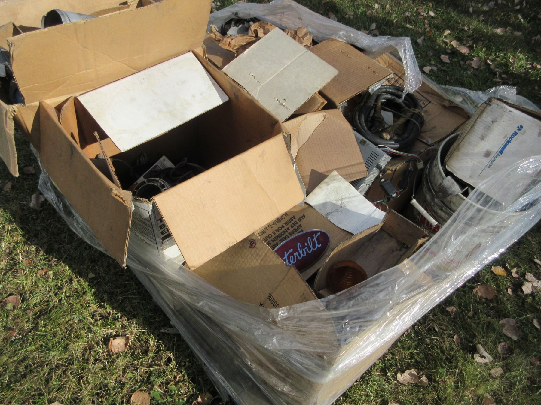 PALLET C/W LIGHTING, TACS, CABLE, TRUCK PARTS, ETC