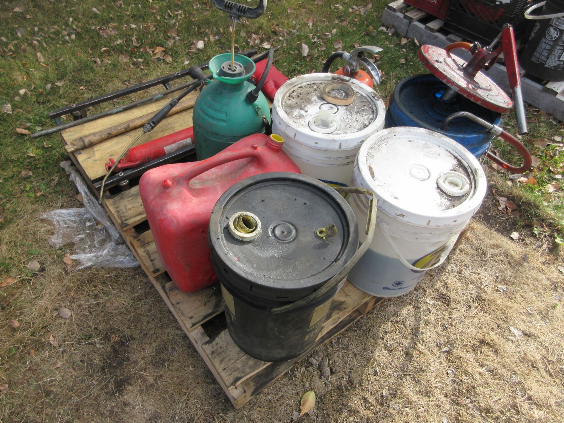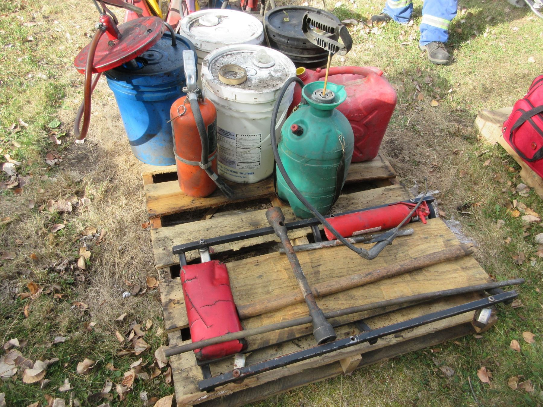 PALLET C/W SPRAYER, OIL, CLEANERS, CREEPER, ETC