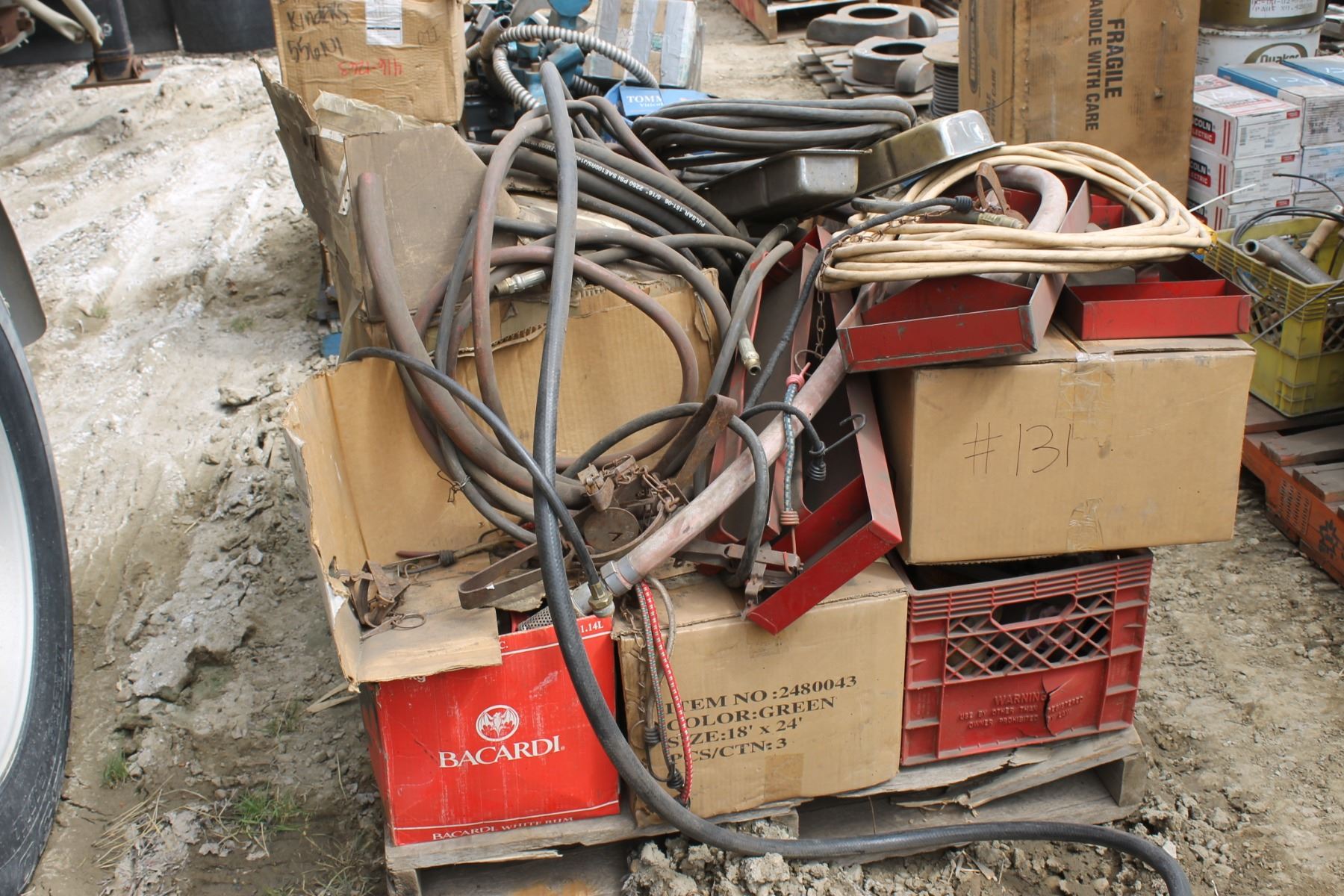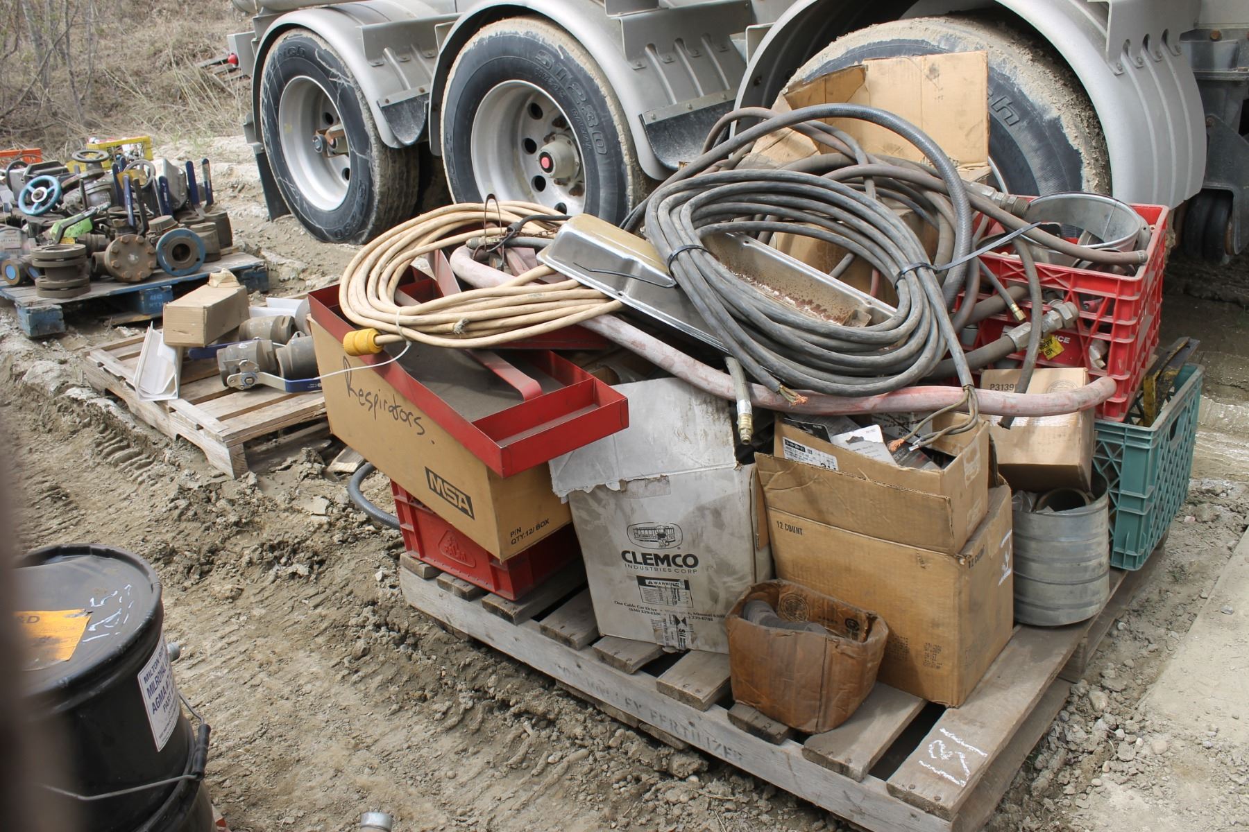PALLET OF MISC HEAVY CORD, YELLOW EXTENSION CORD & TRAPS
