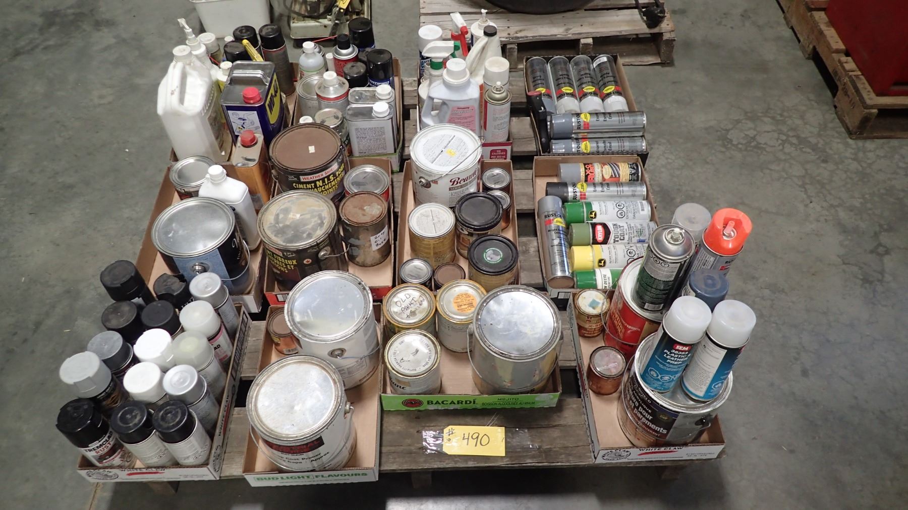 PALLET OF VARIOUS PAINT & PAINT SUPPLIES