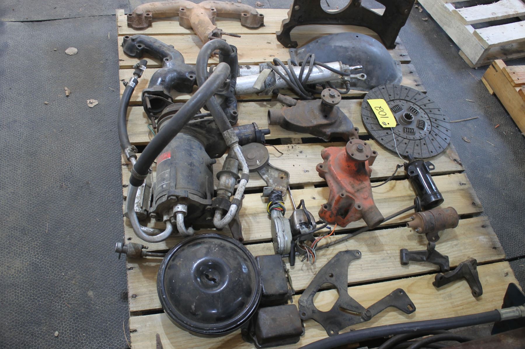 PARTS FOR 283 CHEV ENGINE, BELL HOUSING, RAM HORN MANIFOLDS, AIR CONDITIONER & NUMEROUS OTHER PARTS