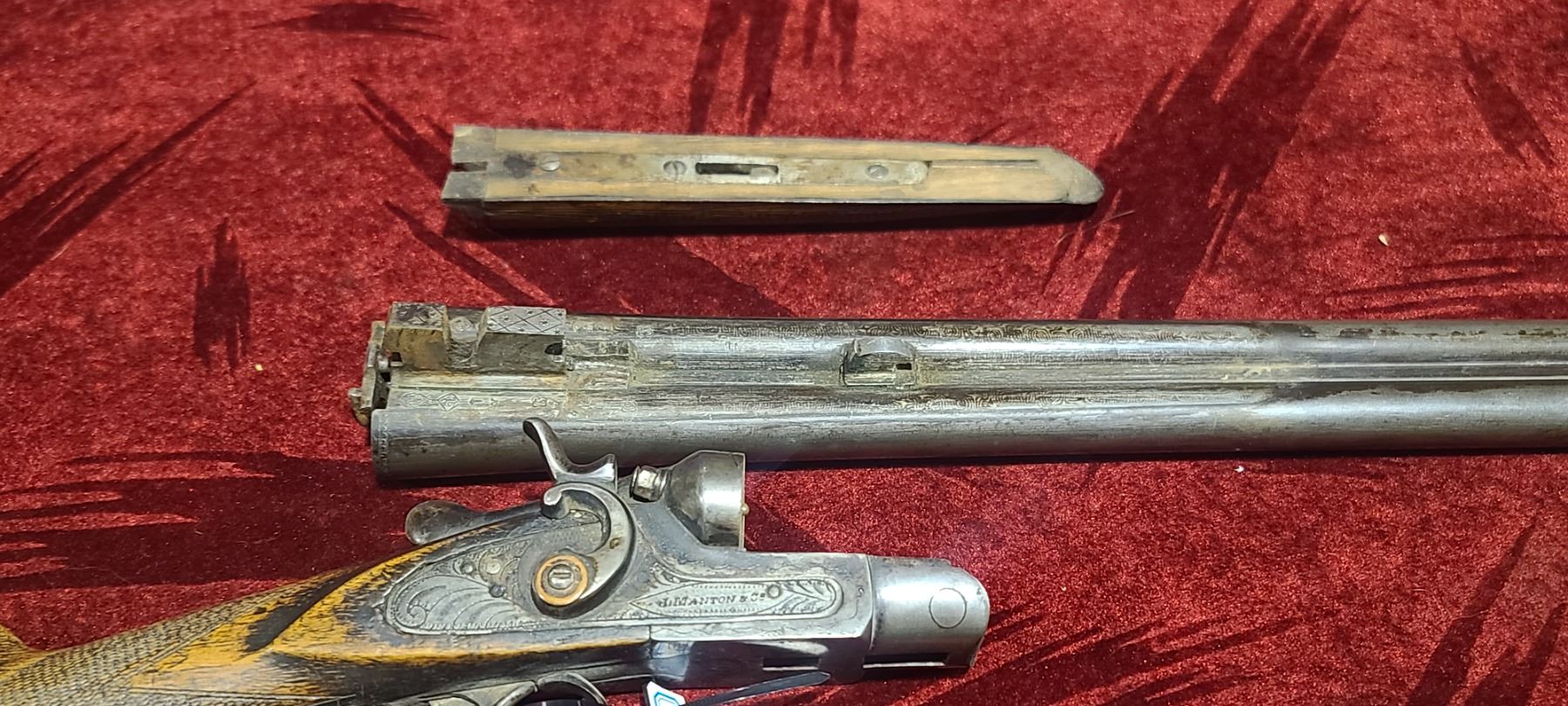 PARTS GUN - J MANTON 12GA - ONE HAMMER IS BROKEN -LOSE BUTT PLATE - NO BEAD SIGHT - 30" BARREL - NO SERIAL NUMBER - SIGNS OF RUST