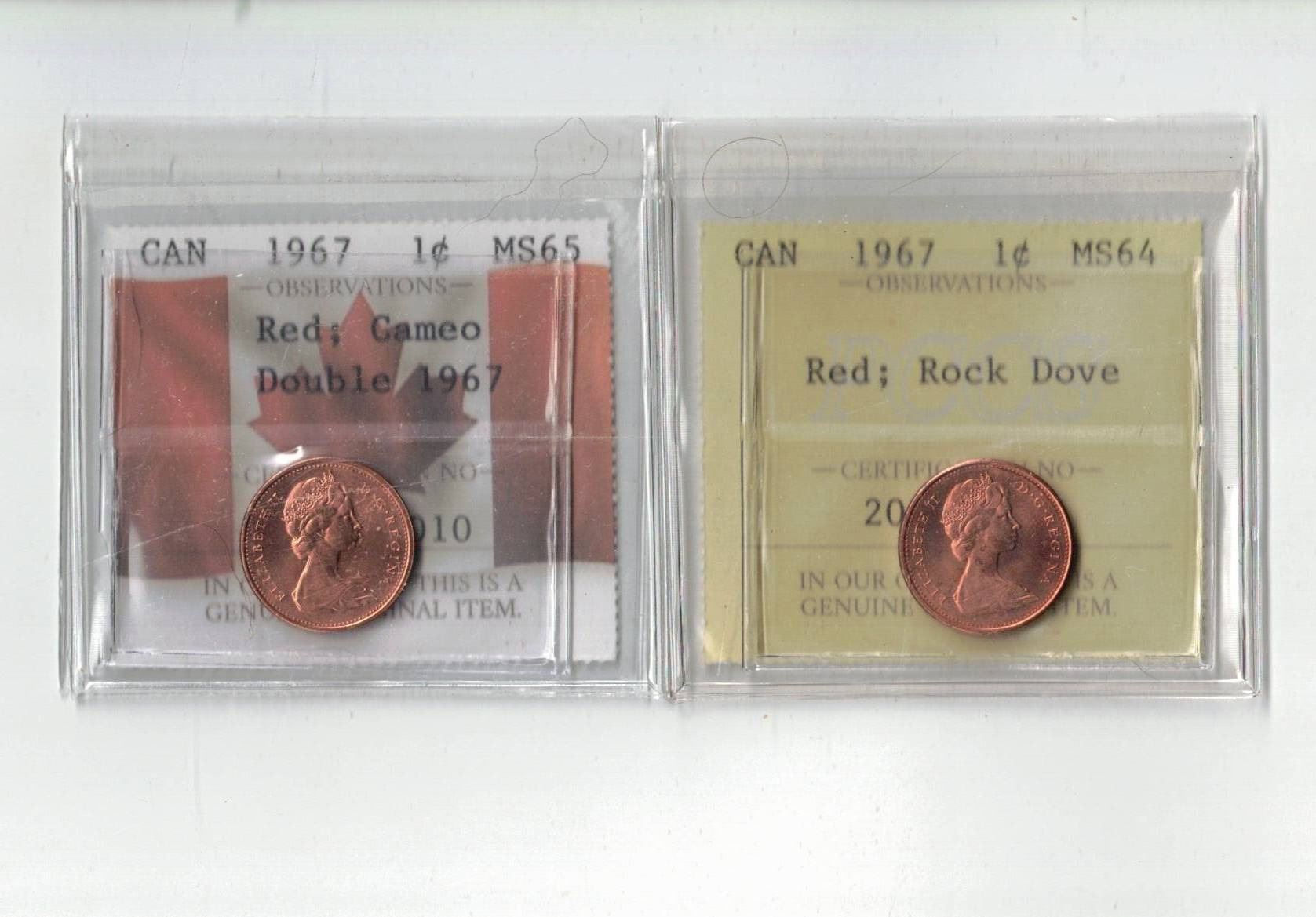 1967 1¢ Red; Cameo; Double 1967, MS65