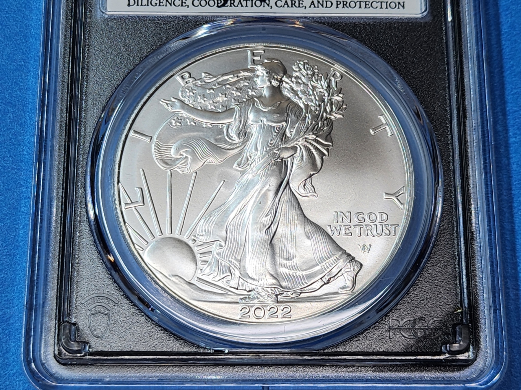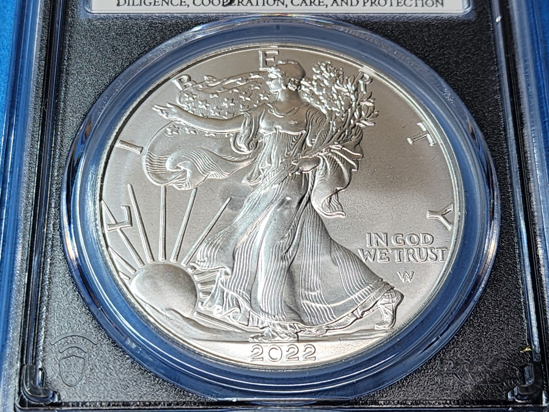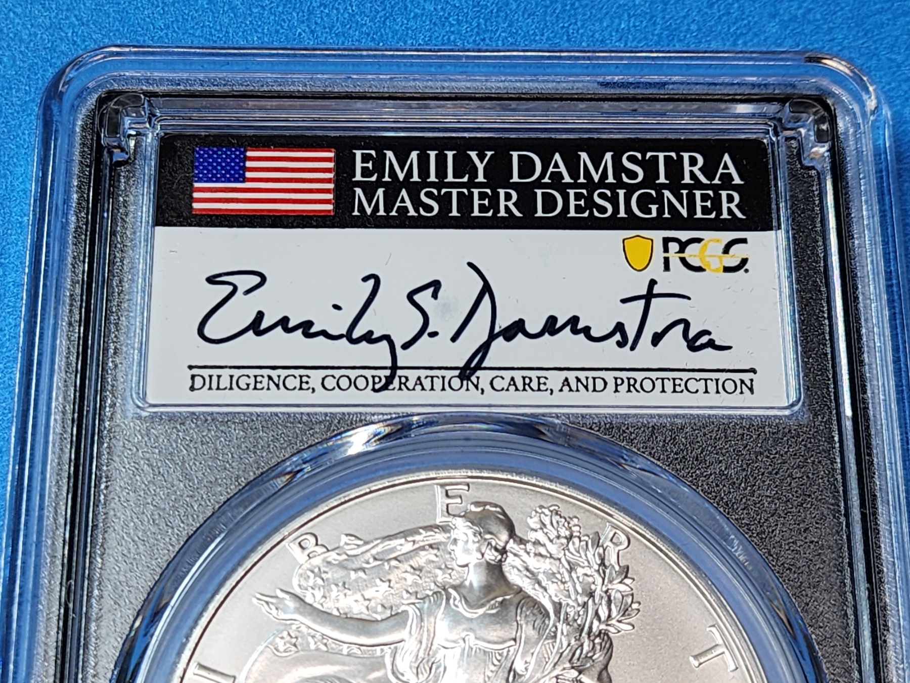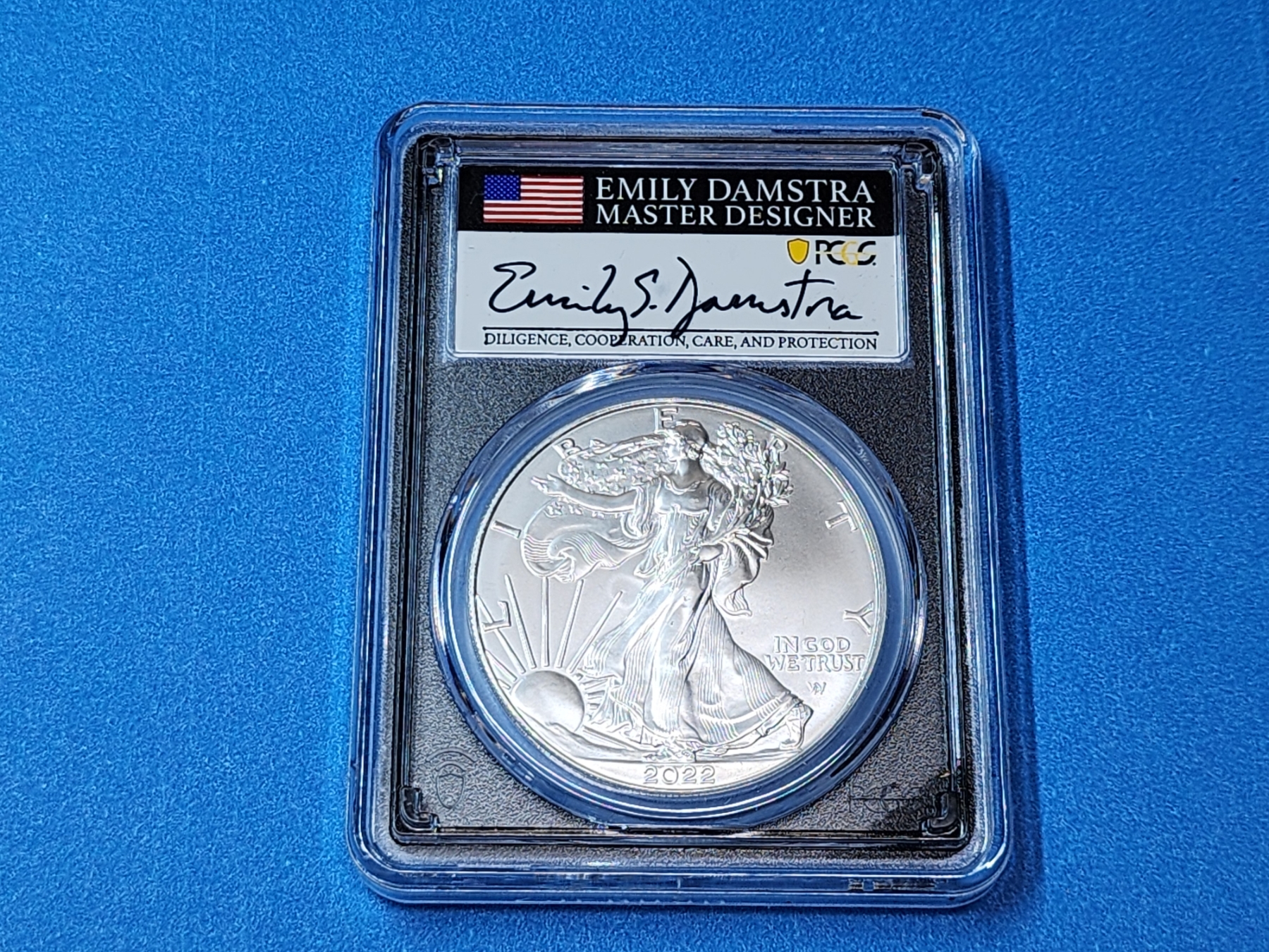 PCGS MS 70 2022 1oz American Silver Eagle - First Day of Issue - Damstra Signed!