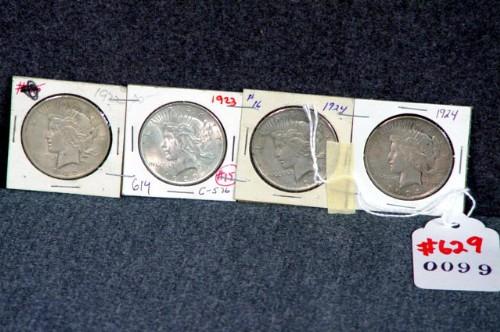 PEACE SILVER DOLLARS, 1922, 1923, 1924 (2)- 4 X TH