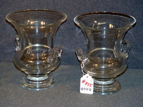PEDESTAL BASED, DOUBLE HANDLED 7.25" GLASS VASES- 2 X THE MONEY
