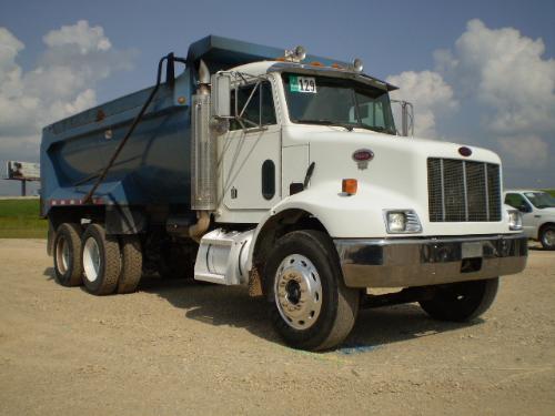 2000 PETERBILT 330 T/A DEMOLITION DUMP TRUCK, s/n 2NPNLD9XXYM549927: CATERPILLAR 3126B 300hp DIESEL ENGINE, FULLER RT8908LL 8-SPD DEEP REDUCTION TRANS, S.E.I. DEMOLITION DUMP BOX, TARP SYSTEM, SWING / AIR GATE, 12,350lb FRONT AXLE, 40,000lb REAR AXLES, DS405 REARS, 3.90 RATIO, AIR RIDE SUSPENSION, 208in WHEEL BASE, ALUMINUM BUDDS FRONT, 11R24.5 TIRES