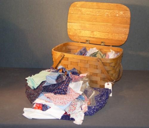 PICNIC BASKET WITH PATCHWORK QUILT SCRAPS