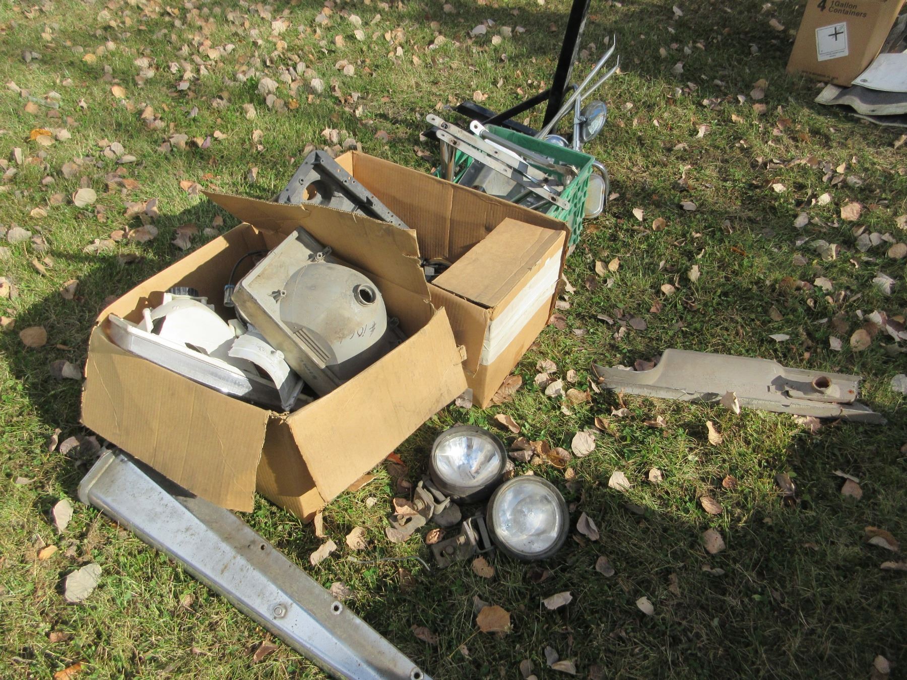 PILE OF LIGHTS, BRACKETS, MIRRORS, ETC