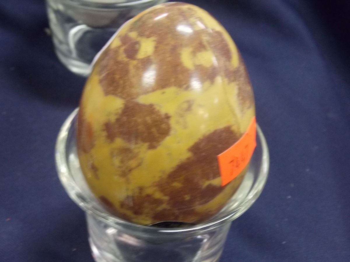 POLISHED STONE CARVED EGG - BROWN WITH YELLOW MARBLING