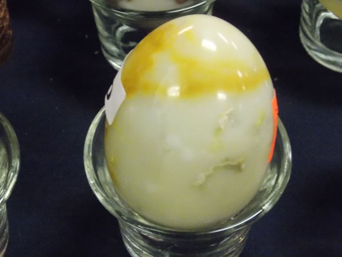 POLISHED STONE CARVED EGG - WHITE WITH BROWN