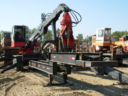 PRENTICE 210E LOG LOADER, S/N 54540 (98 YR) 6BT CUMMINS ENG, C742W GRAPPLE, SAW PACKAGE, JOY STICK CONTROLS, ECAB, MTD ON SHOPBUILT TRAILER
