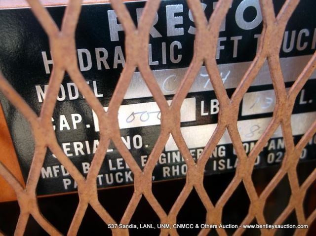 PRESTO C-74 HYDRAULIC LIFT TRUCK, NO KEYS (PS) 6780