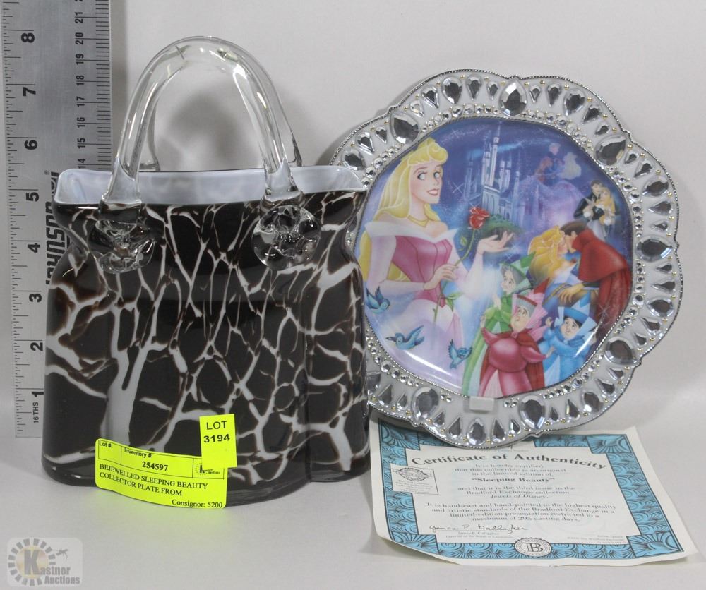 THE BRADFORD EXCHANGE WITH COA AND ART GLASS PURSE SHAPED VASE